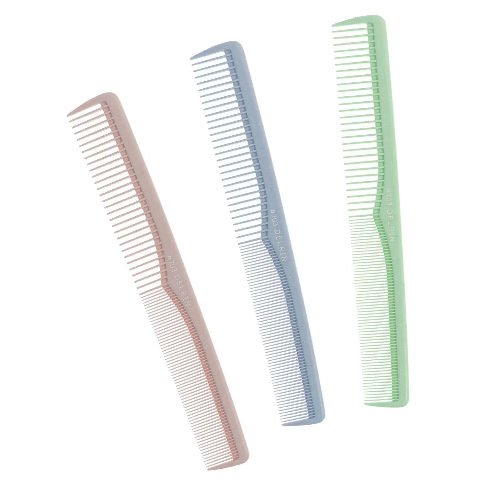 The Delrin 703 is a long-standing and best selling product as it has a well-balanced shape, length, and ease of use. This precision cutting comb has a medium tooth section for pulling larger sections while maintaining tension and going through dry hair. The tight tooth section is great for scissor over comb or pulling and maintaining tension on wet hair for precision cutting. The tooth-tip is finished with a special processing as not scratch the scalp. Tooth thickness is thin for smooth combing with appropriate hardness and superior heat resistance/chemical resistance/durability.