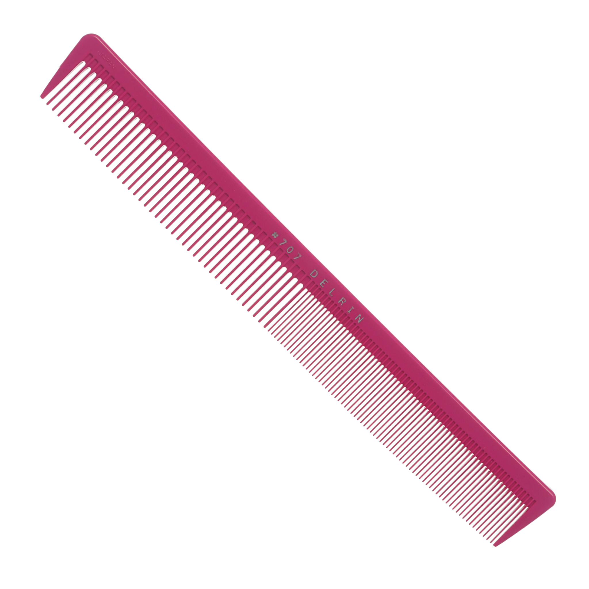 The Delrin 707 is a long-standing and best selling product as it has a well-balanced shape, length, and ease of use. This long cutting comb has a medium tooth section for pulling larger sections while maintaining tension and going through dry hair. The tight tooth section is great for scissor over comb or pulling and maintaining tension on wet hair for precision cutting. The tooth-tip is finished with a special processing as not scratch the scalp. Tooth thickness is thin for smooth combing with appropriate hardness and superior heat resistance/chemical resistance/durability.