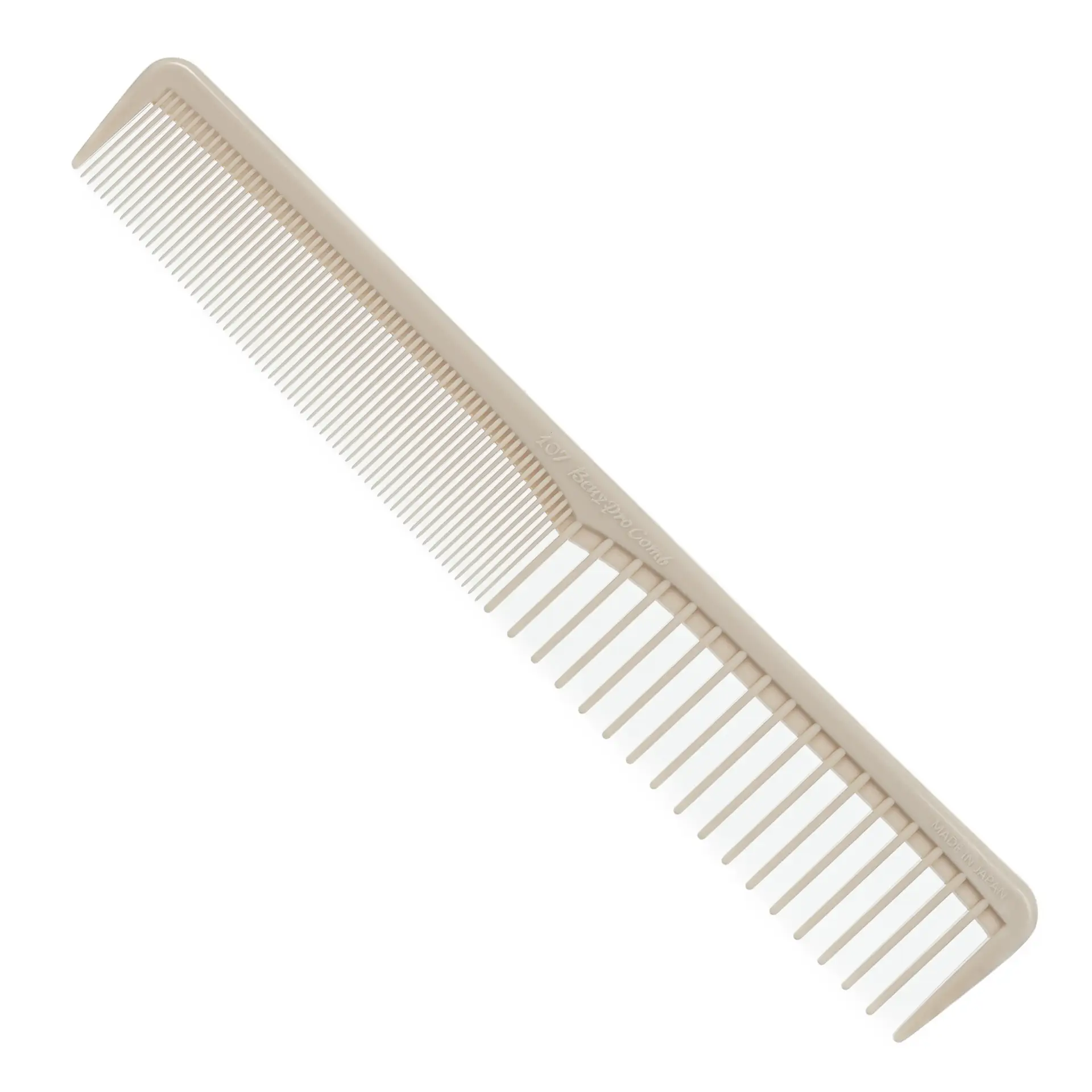 The Hongo Beuy Pro 107 is a world renowned quick cutting comb. Durable, functional and ease of use are all hallmarks of the Hongo company and its combs. The Hongo Beuy Pro 107 is made for quick cutting; with the wide side to pull large sections with a near zero tension for natural fall dry cutting dry cutting on long hair or refining dry on short hair. It’s fine toothed side is soft on the scalp and great for grabbing wet or dry hair with tension for those that need a precise section for hair cutting. A quick cutting comb at its best, with a wide tooth section and a tight tooth section. With a flip, you can either pull thick large sections with ease or keep tight tension for precision. Durable and made in Japan, it quality at its best.