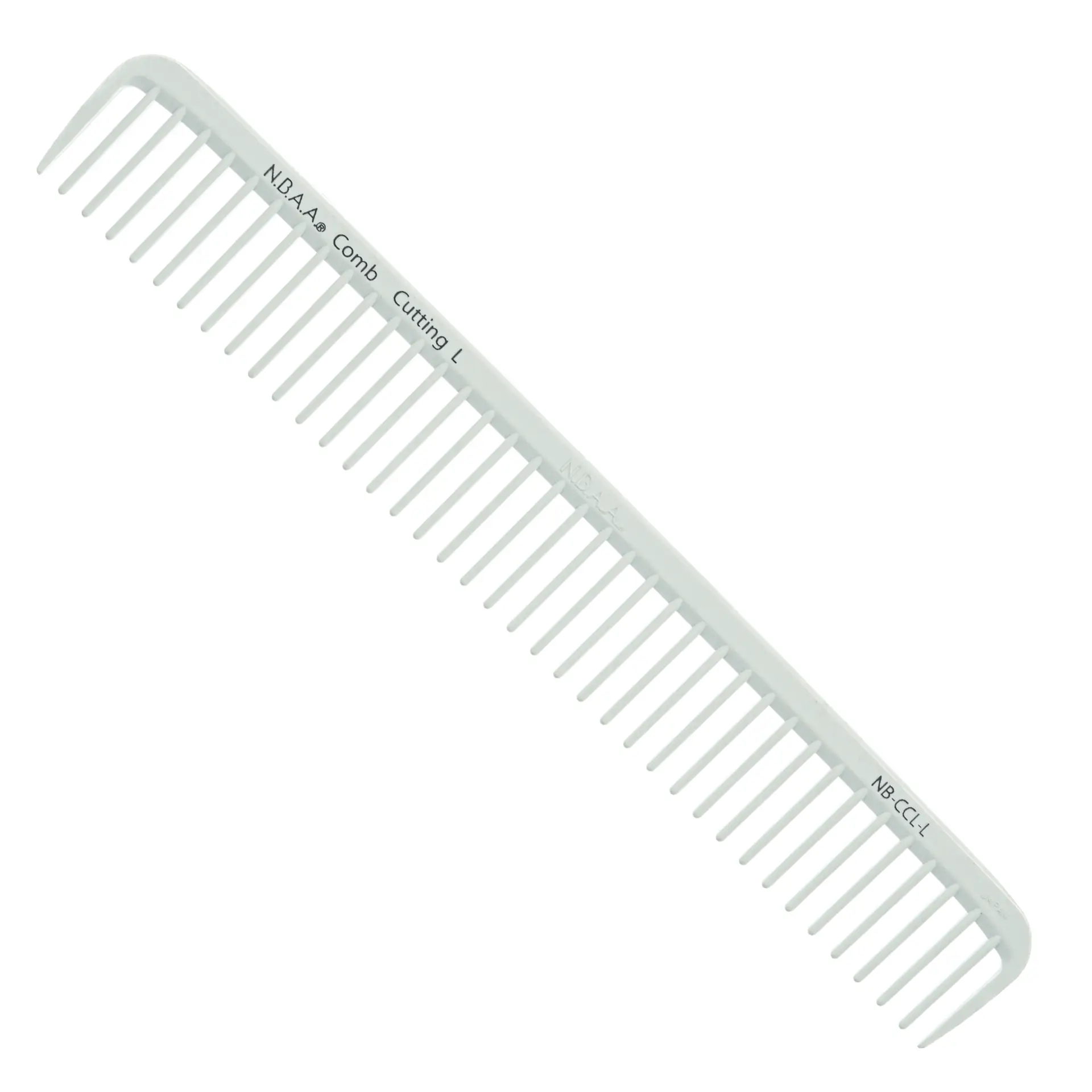 This is a frequently used straight comb with slightly narrow, dense teeth. Its overall length is L, with 59 teeth spaced 1.2mm apart and spaced 1.7mm apart. It provides just the right amount of tension and optimal combing feel for both dry and wet hair, supporting precise and precise cutting across a wide range of hair types.