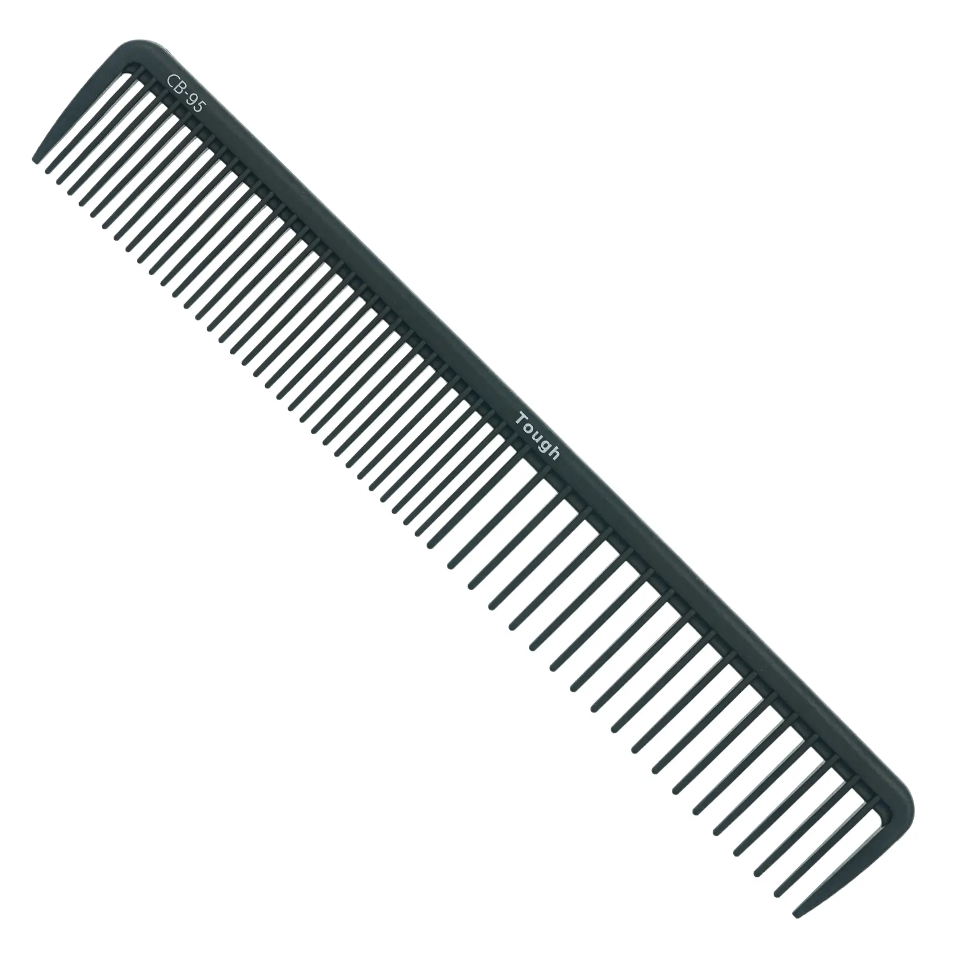 The Tough Comb CB95 by Uehara Cell Comb Company is the strong and heat resistant carbon comb series. Utilizing nylon 66 and carbon, it has a characteristic matte black look and feel, that is incredibly strong, lightweight, and high heat resistant. You will see its use in precision cutting but especially in dry cutting and high heat styling.
