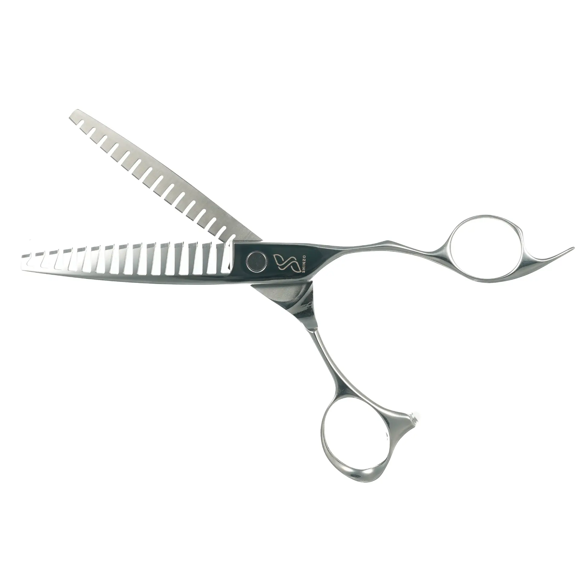 The Shinzo Texture 55 is a double sided texturizer with an edged slant tooth. Unlike the a step tooth, the edge slant tooth cuts cleaner while having the double tooth side, creating diffusion. This specific combination creates a unique effect that takes out weight and creates visible texture without leaving harsh lines. Gentle enough to create texture on your fine haired clients but strong enough for your thick haired clients. Phenomenal for texture over comb, internal weight/texture cutting, chip cutting, shattered fringe, or pointing for a razored effect.